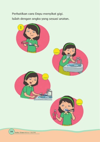 Perhatikan cara Dayu menyikat gigi. Isilah dengan angka yang sesuai urutan. 94 Buku Siswa Kelas 1 SD/MI