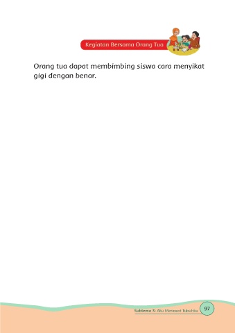 Orang tua dapat membimbing siswa cara menyikat gigi dengan benar. 97 Subtema 3: Aku Merawat Tubuhku