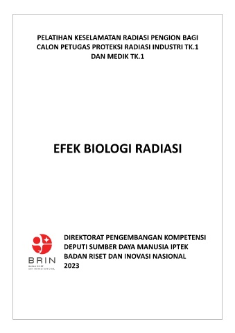 PELATIHAN KESELAMATAN RADIASI PENGION BAGI CALON PETUGAS PROTEKSI RADIASI INDUSTRI TK.1 DAN MEDIK TK.1 EFEK BIOLOGI RADIASI DIREKTORAT PENGEMBANGAN KOMPETENSI DEPUTI SUMBER DAYA MANUSIA IPTEK BADAN RISET DAN INOVASI NASIONAL 2023