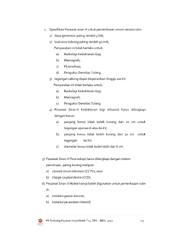c. Spesifikasi Pesawat sinar-X untuk pemeriksaan umum secara rutin: