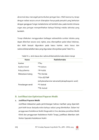 Tabel IV.1. Jenis kasus dan radionuklida/radiofarmaka dalam terapi