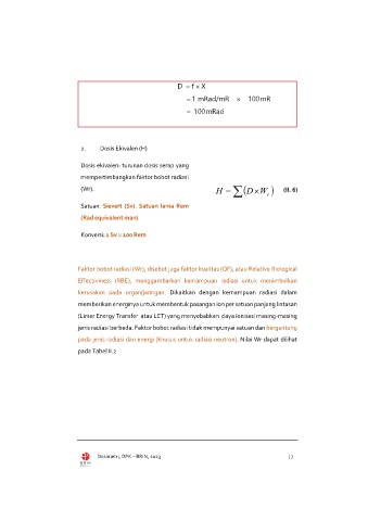 jenis radiasi berbeda. Faktor bobot radiasi tidak mempunyai satuan dan bergantung