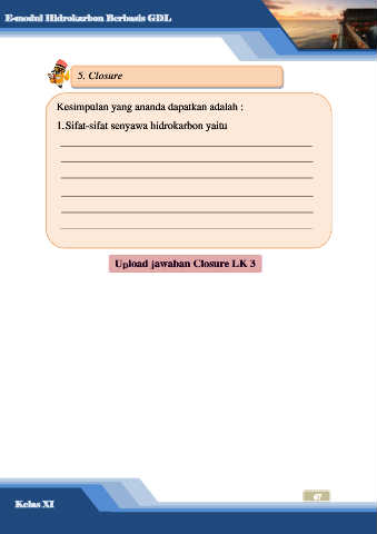 E-modul Hidrokarbon Berbasis GDL E - mo dul Hi dr ok arbon Berba s i s G DL 5. Closure Kesimpulan yang ananda dapatkan adalah : 1. Sifat-sifat senyawa hidrokarbon yaitu Upload jawaban Closure LK 3 67 Kelas XI