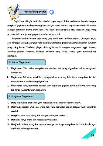 mengakui gagasan atau karya orang lain sebagai karya sendiri. Plagiarisme dapat dikatakan