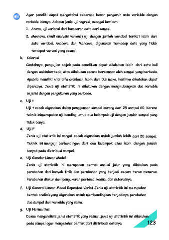 variable lainnya. Adapun jenis uji regresi, sebagai berikut: