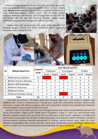 Dari hasil pemeriksaan PCR pada ginjal tikus tersebut, ditemukan hasil positif di wilayah kerja