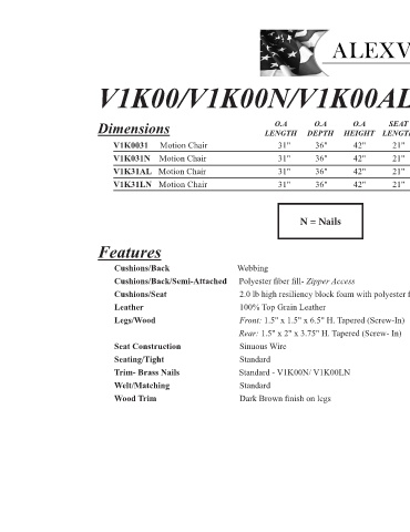 V1K31AL Motion Chair 31" 36" 42" 21" 20" 21"