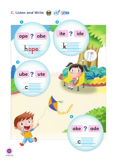 C. Listen and Write 2 69 1 2 ope ? obe ite ? ide k hope 3 ube ? ute c 4 ake ? ade c 35 thirty-five