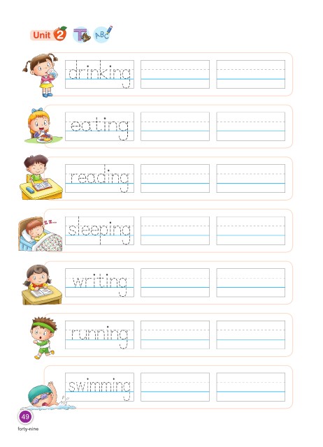 Unit 2 drinking eating reading sleeping writing running swimming 49 forty-nine