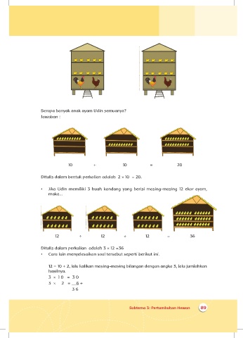 • Jika Udin memiliki 3 buah kandang yang berisi masing-masing 12 ekor ayam,