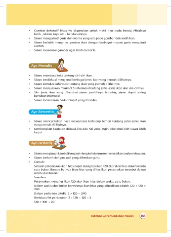 • Siswa memuliskan minimal 5 informasi tentang jenis-jenis ikan dan ciri-cirinya.