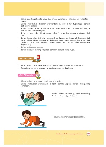 • Siswa menuliskan tahapan perkembangan/daur hidup kupu-kupu dengan