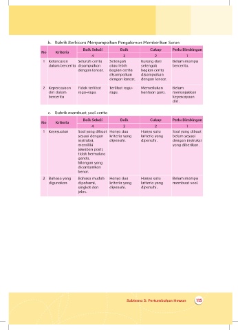 b. Rubrik Berbicara Menyampaikan Pengalaman Memberikan Saran
