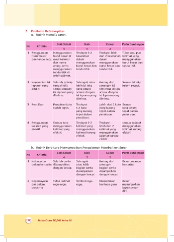 b. Rubrik Berbicara Menyampaikan Pengalaman Memberikan Saran