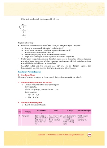 Ditulis dalam bentuk pembagian 141 : 3 = ...