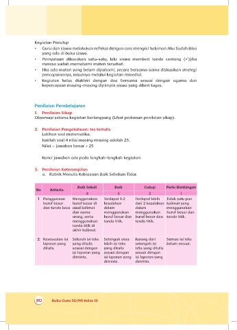 • Guru dan siswa melakukan refleksi dengan cara mengisi halaman Aku Sudah Bisa