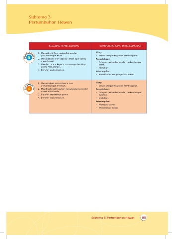 Subtema 3: Pertumbuhan Hewan 85