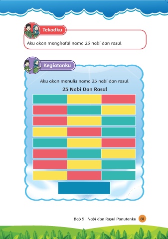 Tekadku Aku akan menghafal nama 25 nabi dan rasul. Kegiatanku Aku akan menulis nama 25 nabi dan rasul. 25 Nabi Dan Rasul Bab 5 l Nabi dan Rasul Panutanku 81