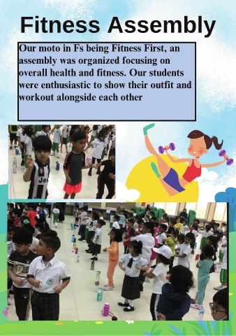 Fitness Assembly Our moto in Fs being Fitness First, an assembly was organized focusing on overall health and fitness. Our students were enthusiastic to show their outfit and workout alongside each other