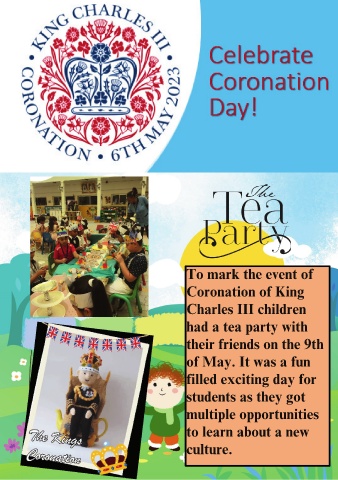 To mark the event of Coronation of King Charles III children had a tea party with their friends on the 9th of May. It was a fun filled exciting day for students as they got multiple opportunities to learn about a new culture.