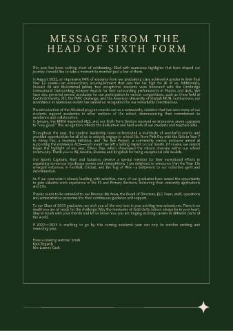 organizing numerous interhouse events and competitions. I am delighted to announce that the Year 13s