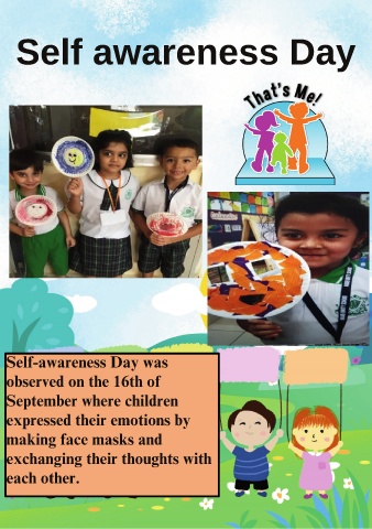Self awareness Day Self-awareness Day was observed on the 16th of September where children expressed their emotions by making face masks and exchanging their thoughts with each other.