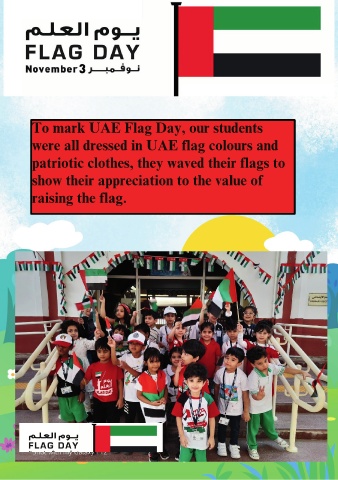 To mark UAE Flag Day, our students were all dressed in UAE flag colours and patriotic clothes, they waved their flags to show their appreciation to the value of raising the flag.