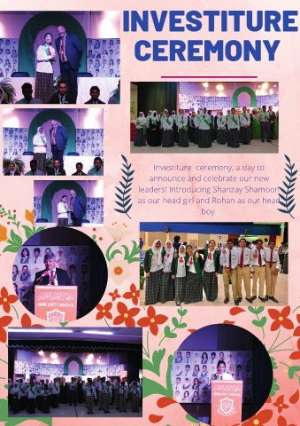 INVESTITURE CEREMONY Investiture ceremony, a day to announce and celebrate our new leaders! Introducing Shanzay Shamoon as our head girl and Rohan as our head boy