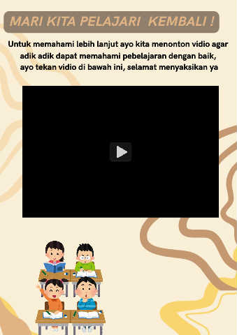 MARI KITA PELAJARI KEMBALI ! Untuk memahami lebih lanjut ayo kita menonton vidio agar adik adik dapat memahami pebelajaran dengan baik, ayo tekan vidio di bawah ini, selamat menyaksikan ya
