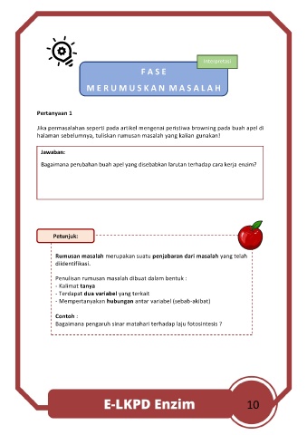 Jika permasalahan seperti pada artikel mengenai peristiwa browning pada buah apel di