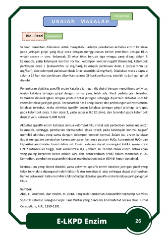 Spesifik Katalase Jaringan Ginjal Tikus Wistar yang diinduksi Formaldehid secara Oral. Jurnal
