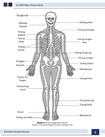 E-LKPD Materi Sistem Gerak Gambar 2. Sistem Rangka pada Manusia Sumber: The Human Skeletal System-HubPages.com | Struktur Rangka Manusia 5