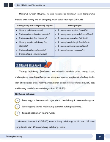 Menurut Kurniasih (2018:40) ruas tulang belakang terdiri dari 28 ruas