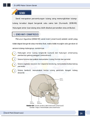Menurut Agustina (2022:43) sendi mati (sinartrosis) adalah sendi yang