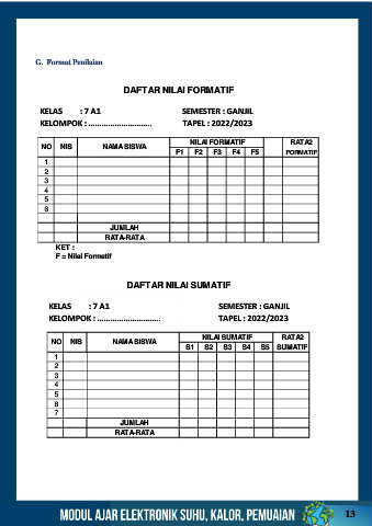 G. Format Penilaian