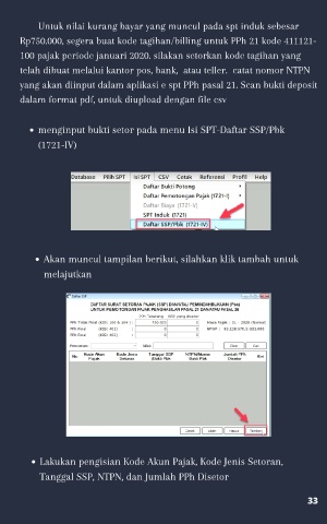 menginput bukti setor pada menu Isi SPT-Daftar SSP/Pbk