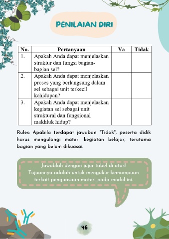 Rules: Apabila terdapat jawaban "Tidak", peserta didik