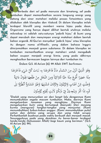 bahan organik. Al-Qur'an menyebut “pabrik hijau” atau kloroplas