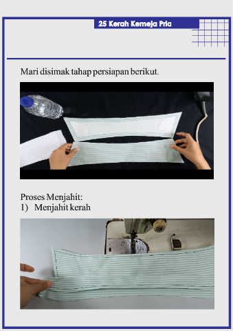 vi Kerah Kemeja Pria 25 Mari disimak tahap persiapan berikut. Proses Menjahit: 1) Menjahit kerah