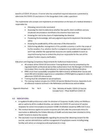 • The training module includes this COVID-19 Vaccine Medical Directive, Appendix A and