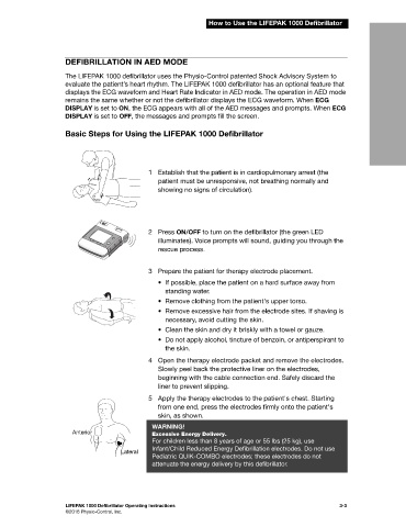 LIFEPAK 1000 Defibrillator Operating Instructions 3-3