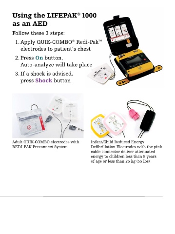 The LIFEPAK 1000 defibrillator performs an automatic Adult QUIK-COMBO electrodes with Infant/Child Reduced Energy