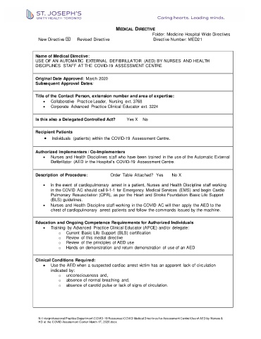 N:\Interprof essional Practice Department\COVID-19 Resources\COVID Medical Directiv es f or Assessment Centre\Use of AED by Nurses &