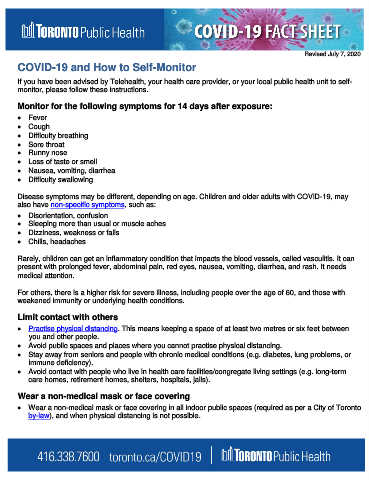 If you have been advised by Telehealth, your health care provider, or your local public health unit to self-