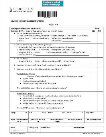 COVID-19 SCREENING ASSESSMENT FORM