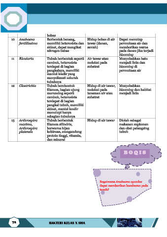13 Arthrospira Tubuh berbentuk Hidup di air tawar Diolah sebagai