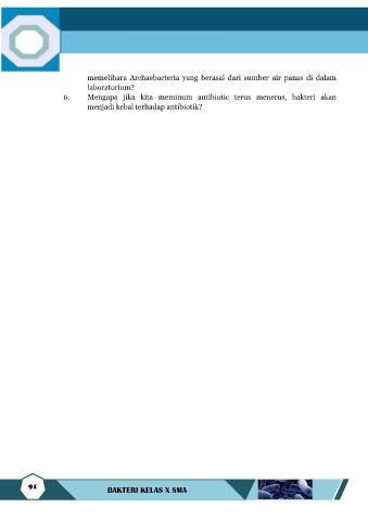 memelihara Archaebacteria yang berasal dari sumber air panas di dalam laboratorium? 6. Mengapa jika kita meminum antibiotic terus menerus, bakteri akan menjadi kebal terhadap antibiotik? 91 c BAKTERI KELAS X SMA
