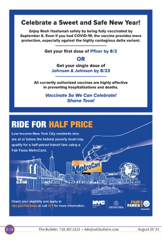 E-18 The Bulletin 718.387.0123 • Ads@willbulletin.com August 28 '21