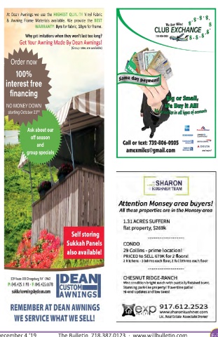 Order now 100% interest free financing NO MONEY DOWN starting October 23 Rd Ask about our off season and group specials December 4 '19 The Bulletin 718.387.0123 · www.willbulletin.com E-31