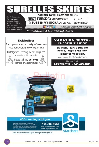 VACATION RENTAL CHESTNUT RIDGE Beautiful large private home, large property, ideal for vacation. Available for Shabbosim. Please Call: 845.274.3714 or 845.425.4010 Bulletin E-8 # 0'' /$) ǚǔǛǻǖǛǚǻǓǔǕǖ ȗ .ȭ2$'' 0'' /$)ǻ *( July 10 '19
